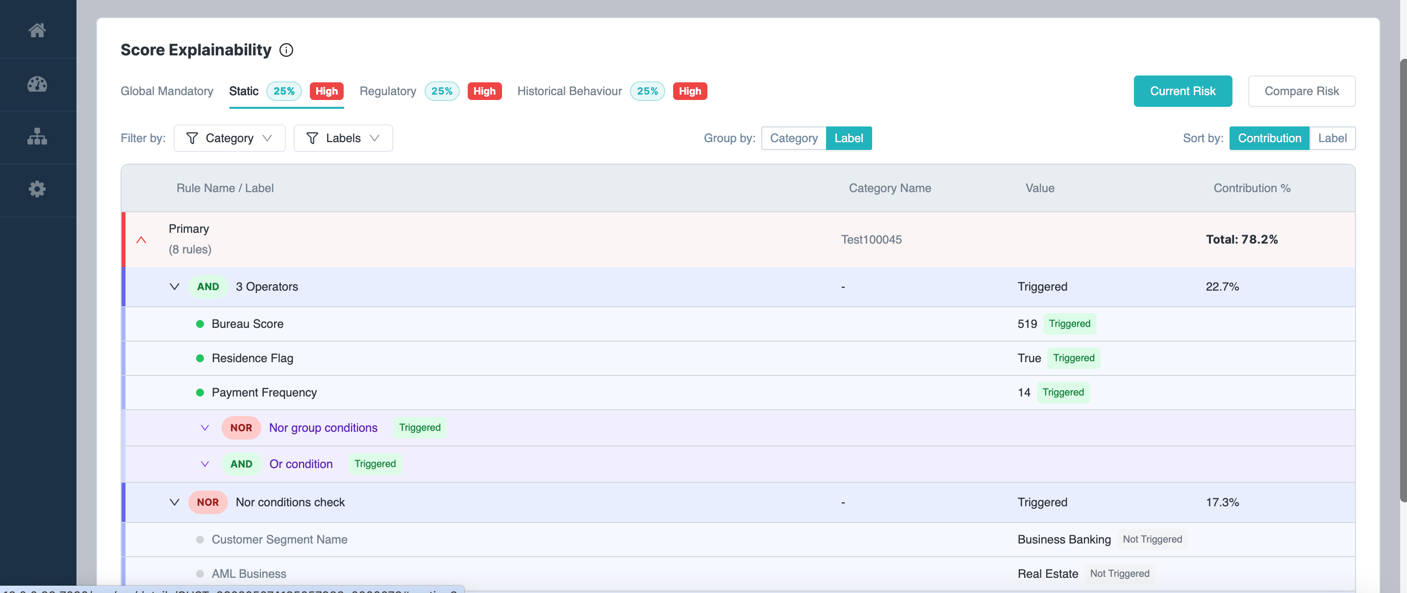 Investigators can now interpret risk outcomes faster, with explainability that clarifies whether the score came from mandatory overrides or from rules-based scoring, and what contributed the most.
